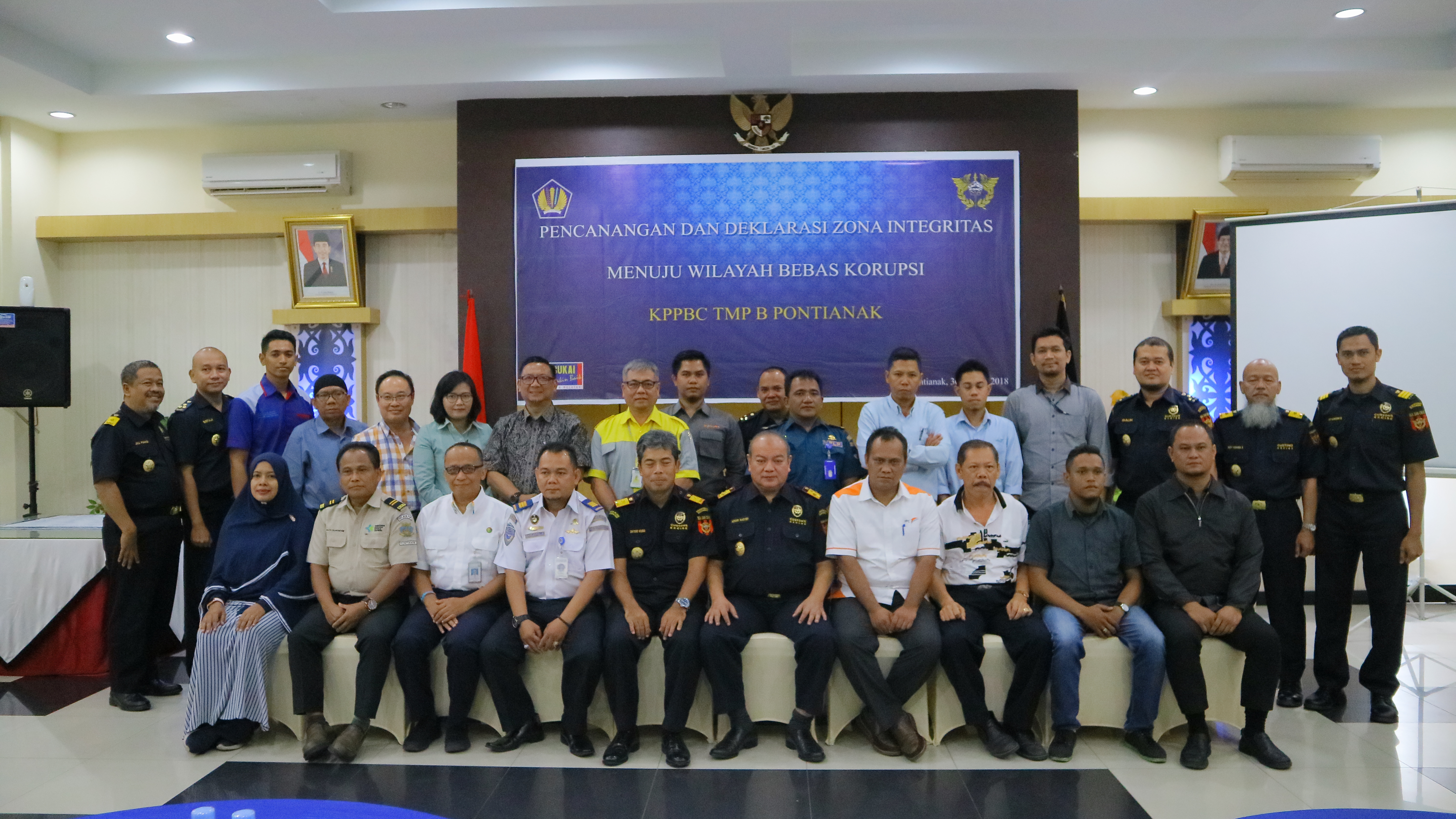 Pada hari selasa 30 Januari 2018 pukul 10.00 WIB bertempat di Aula KPPBC TMP B Pontianak telah dilakukan launching serta penandatanganan Pencanangan Kantor Wilayah Bebas Korupsi (WBK) dan Wilayah Birokrasi Bersih dan Melayani (WBBM). Pencanangan diawali dengan kata sambutan dari Kepala Kantor Wilayah DJBC Azhar Rasyidi dan dilanjutkan pemaparan Bea Cukai Pontianak menuju WBK dan WBBM oleh Kepala Kantor KPPBC TMP B Pontianak Dwiyono Widodo. Acara dilanjutkan dengan penandatanganan di atas spanduk dimulai dari Kepala Kantor Wilayah dilanjutkan Kepala KPPBC serta perwakilan instansi dan para stakeholder di lingkup Bea Cukai Pontianak. Hal ini dilakukan sebagai tekad untuk menjadikan Bea Cukai Pontianak menjadi zona integritas menuju kantor WBK dan WBBM dengan harapan mulai saat ini dan seterusnya Bea Cukai Pontianak telah bebas dari korupsi dan pungutan liar dalam bentuk apapun. Selaras dengan tujuan tersebut diharapkan sinergi dari berbagai pihak baik instansi terkait, stakeholder dan masyarakat luas untuk dapat bersama-sama memegang komitmen untuk bebas korupsi, bersih dan mampu memberikan pelayanan terbaik.