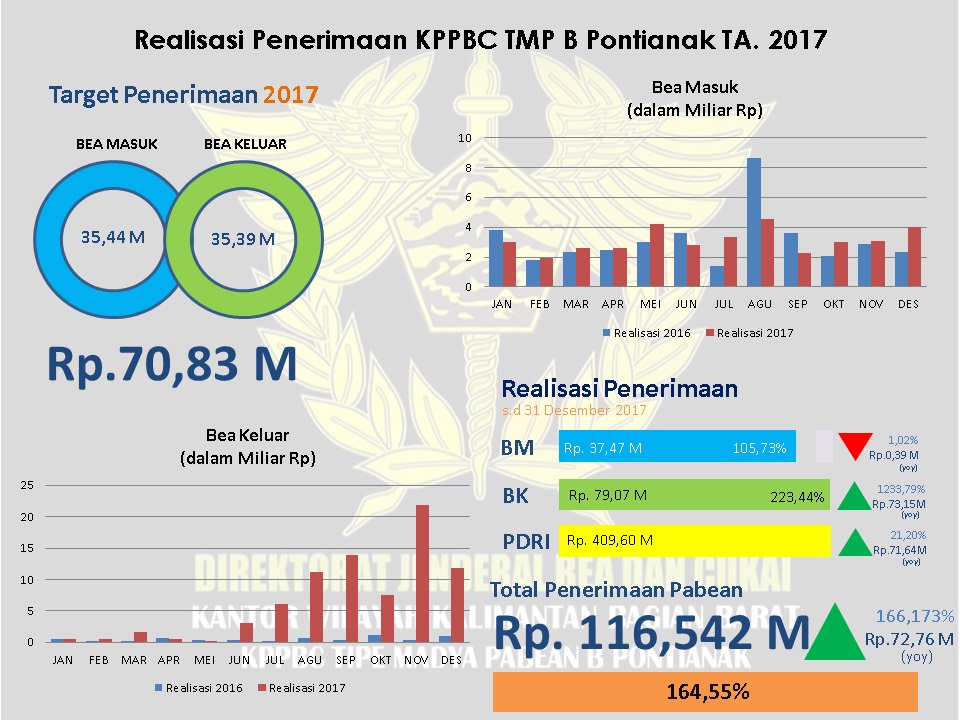 Realisasi Penerimaan KPPBC TMP B Pontianak tahun 2017